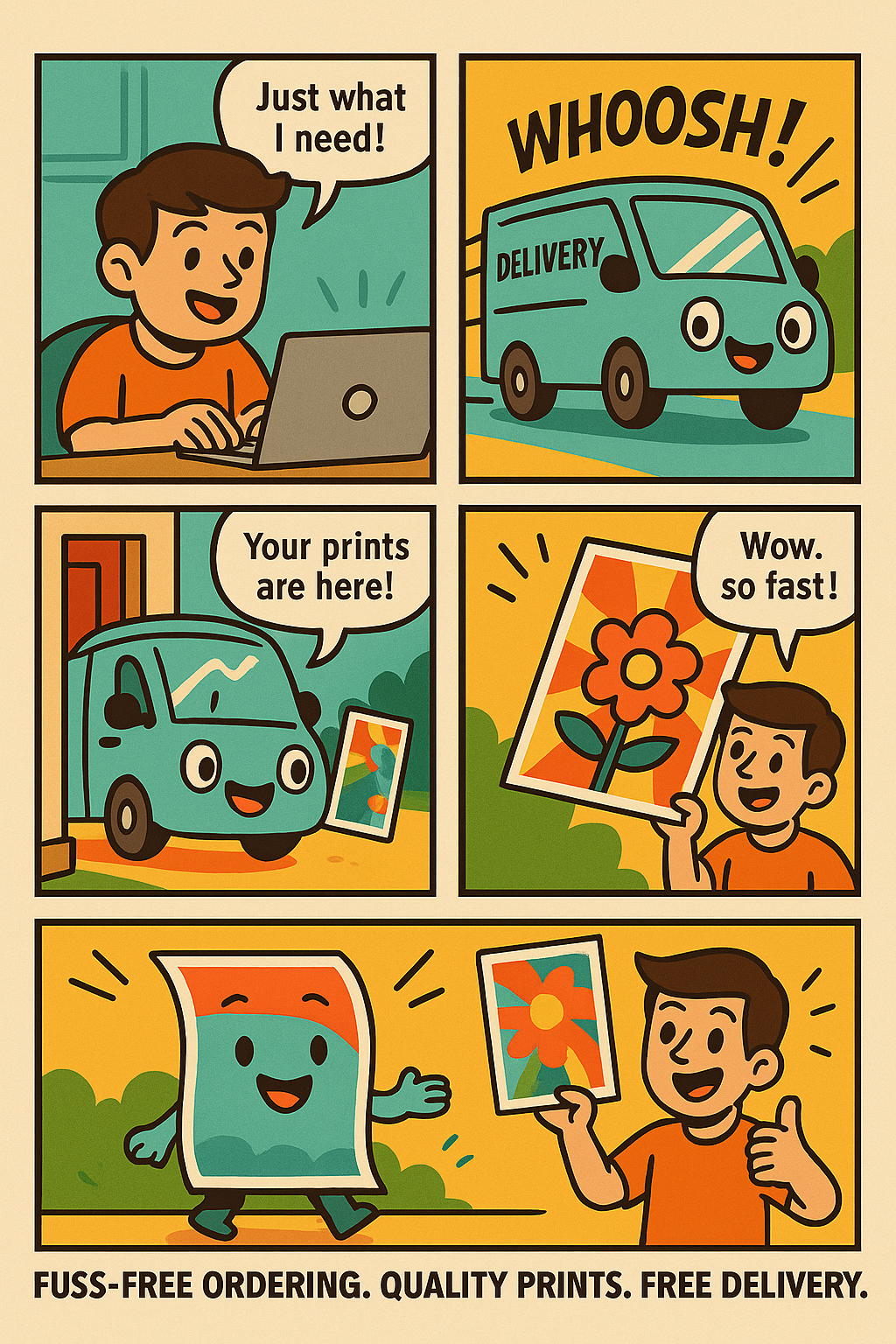 The entire process was seamless, from ordering to delivery. The prints were vibrant and professional-looking. I’ll definitely be ordering again!