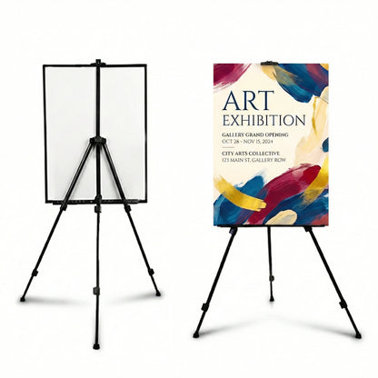 Display your posters and artwork with ease using this versatile Easel Poster Stand. Designed for stability and convenience, it features a sturdy metal frame with rubber support to securely hold posters, framed canvases, or drawing boards.